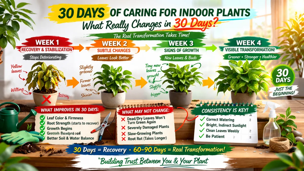 Taking care of indoor plants for 30 days can feel slow but small changes matter. The real transformation starts quietly: healthier roots, stable leaves, and gradual growth.